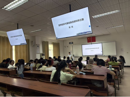 应必赢bwin线路检测中心邀请,9月4日下午南昌大学附属康复医院副院长邓欢博士为全院教师作题为“坚持临床与基础融合的科研之路”的能力提升培训。邓欢以“科研分类——科研方向——如何融合 ——坚持之道”为核心脉络,系统拆解临床与基础融合的科研路径。